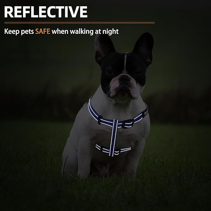 PUPTECK No Pull Dog Harness Soft Adjustable Basic Nylon Step in Puppy Vest Outdoor Walking with ID Tag, Reflecive Navy Blue, S
