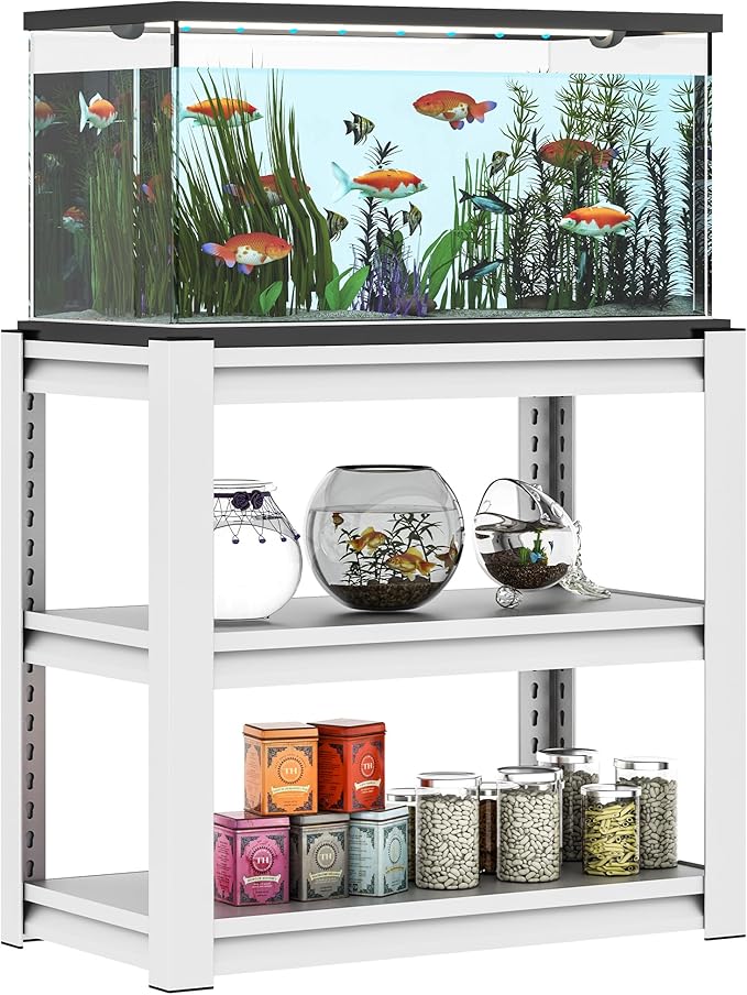 - 【RUST-PROOF, SCRATCH-PROOF, EASY-TO-CLEAN 30 GALLON TANK STAND】This tank is phosphated and has a high-quality, premium powder-coated appearance with rounded edges, which won't be susceptible to moisture and mildew like MDF, and will not be easily scratched, and it's also exceptionally easy to clean, so if you need an aquarium stand, this 3-tier shelf is the perfect choice for you.