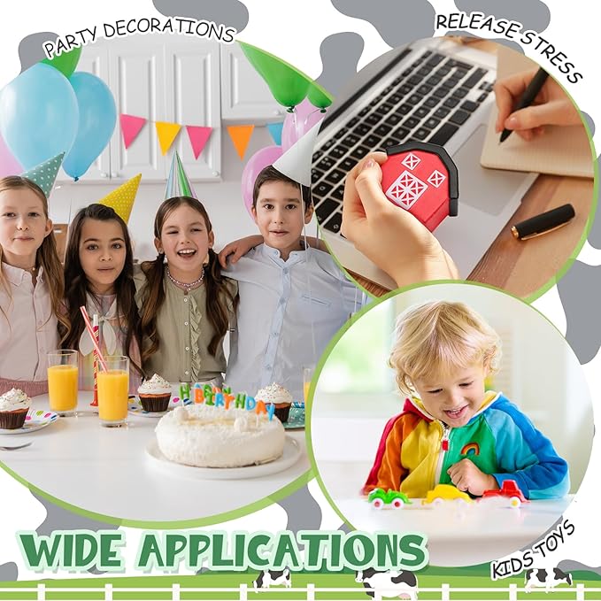 - Stress Relief and Interactive Fun: these farm animal squeezes are not just decorative; They also serve as a source of pleasure and stress relief for guests; Their fun design encourages interaction, farm animal toys are cute and compact, fun to press, stretch, or twist, allowing attendees to engage with the decorations; This feature adds an enjoyable element to the event, making it memorable for people involved