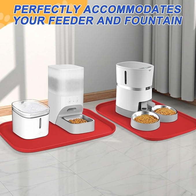 - Widely Used - The anti slip dog food spill mat with high sides can also be used under pet water fountain, automatic feeder, and litter boxes to help contain messes and protect floors. Use as boot mat, shoe matt tray for entryway, pet water splash mat, dog water bowl drip pan. Can also be used for dog crate, trash can, pet water dispenser, countertop, plant, fish tank.
