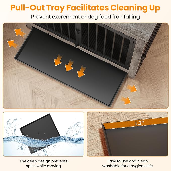 Dog Crate Furniture, Dog Crate End Table for Medium and Large Dogs,Wooden Cage Kennel Furniture Indoor, Modern Dog Crate with Multi-Purpose Removable Tray, Double-Doors Dog Furniture