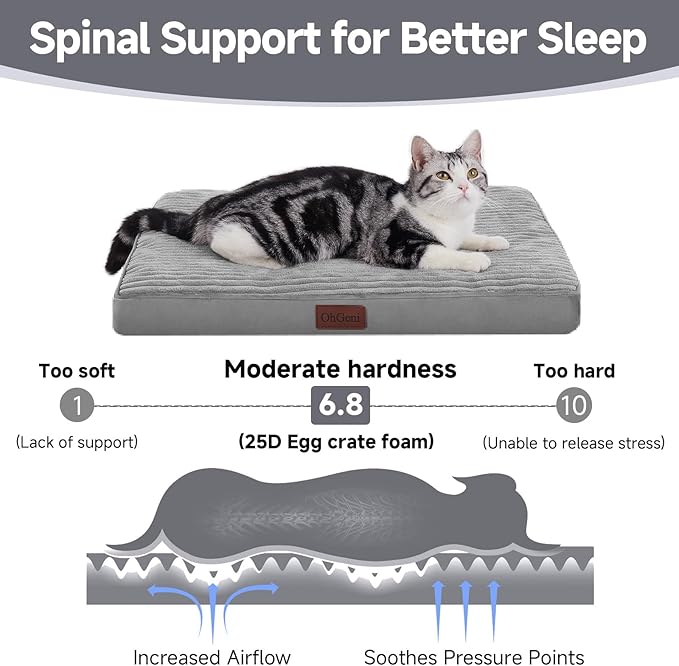 OhGeni Orthopedic Waterproof & Machine Washable Dog Bed for Small Pets, Suitable for Crates, Cat Mat with 25D Egg Crate Foam, Non-Slip Bottom & Removable Cover, Invisible Zipper, 24 Inches(Gray)