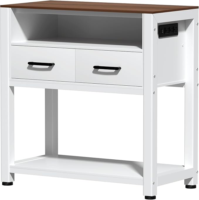20-29 Gallon Aquarium Stand with Stable Metal Frame & Power Outlet, Heavy-Duty Fish Tank Stand with Waterproof Mat, 550LBS Capacity Storage Cabinet, White+Brown