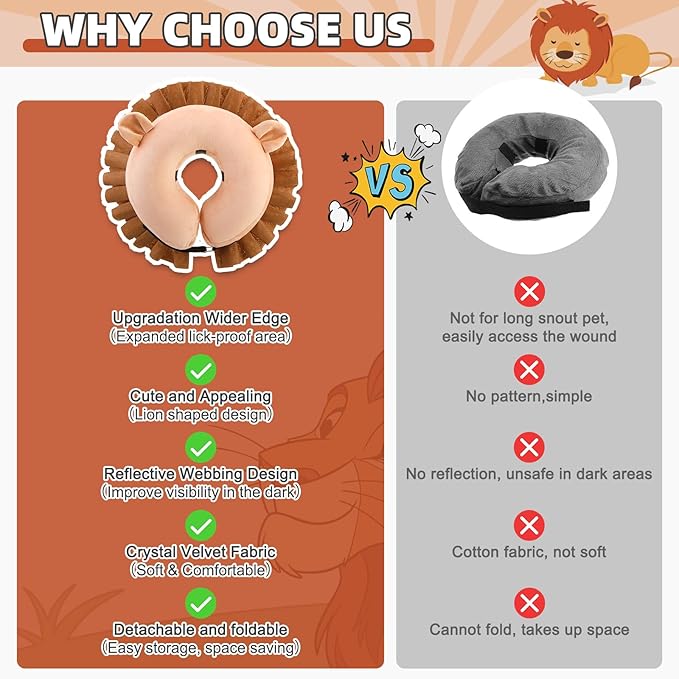 - WIDER ANTI-LICKING AREA: Compared to traditional inflatable collars, this type of inflatable collar has a protective cover around it, which has a larger anti licking range. We specially adopted a lion shaped design to make the dogs look cuter. Provides a wider area around. Extending outward has replaced extending upwards, providing better visibility and preventing dogs from biting, making it less likely to be bitten. Don't worry, this won't stop the dog from walking and moving normally.