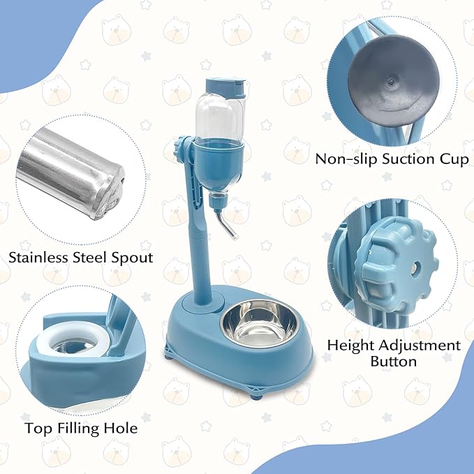 - Adjustable & Removable & lifting design: The indoor puppy water feeder bottle's height of the water bottle can be adjusted freely according to your pet's height, suitable for cats and dogs of all sizes. It can also use as a bunny water dispenser