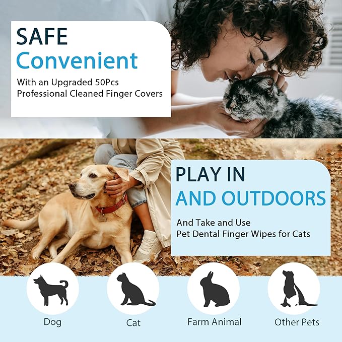 - 【Versatile and Easy to Use】: With 50 wipes in each pack, our kitten teeth wipes and Natural formula teeth cleaning finger design provide a simple solution for daily dental care. Whether at home or on the go, these pet friendly finger wipes make it easy to keep your pet's teeth clean and healthy anytime, anywhere.