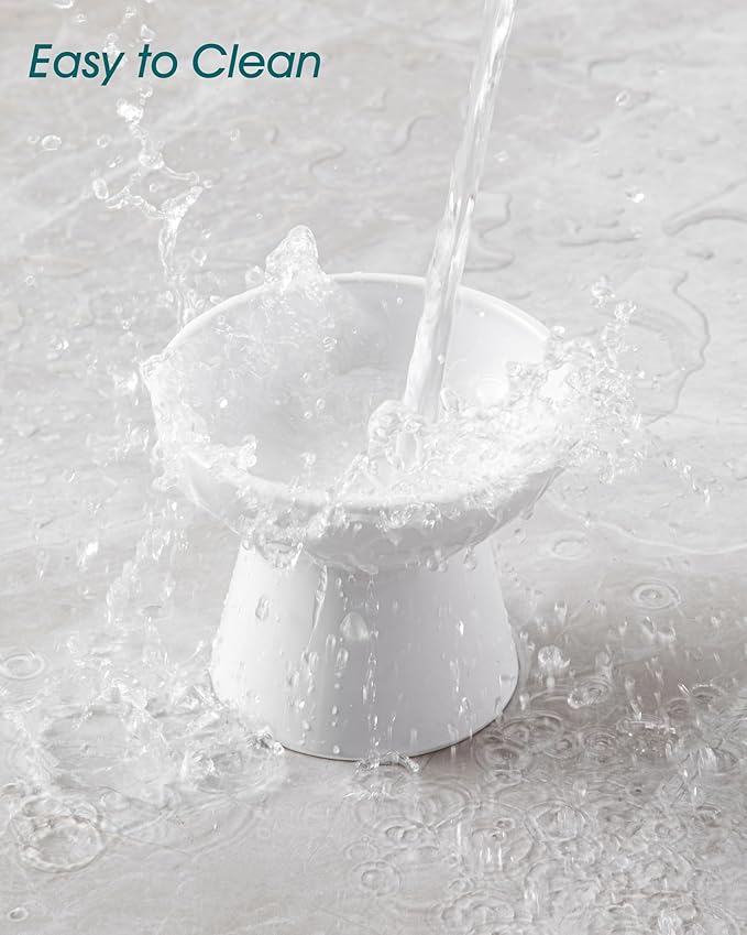- 【Promotes Comfortable Feeding Posture】The elevated cat bowl design(5.1" height) reduces neck strain, promoting a more natural and comfortable feeding posture. It supports better digestion and reduces strain on sensitive stomachs, making mealtime more enjoyable for your pet