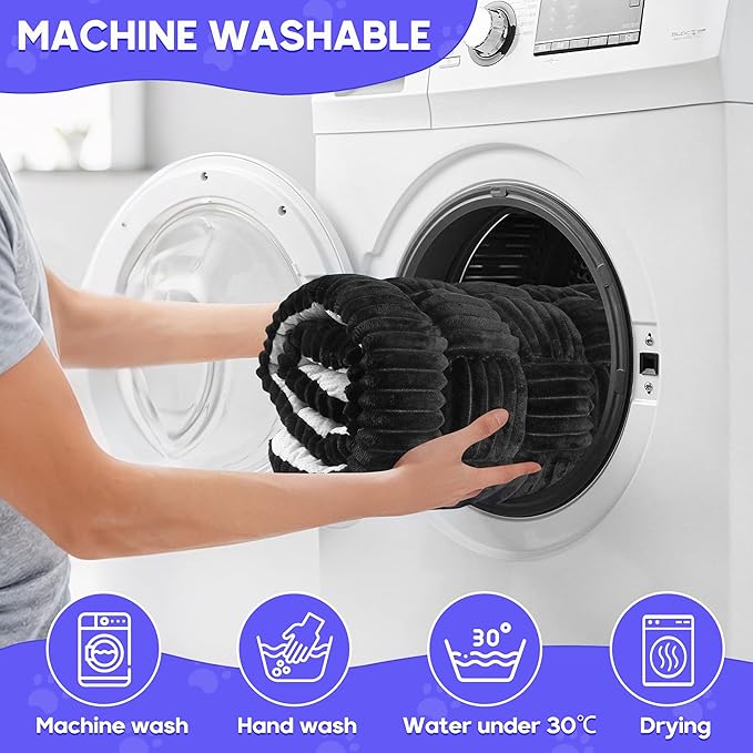 - đ§źăDurable and Easy to CleanăWe understand that pet products need to withstand daily wear and tear. That's why this fuzzy dog bed is made of durable materials that can endure your pet's scratching, chewing, and all kinds of daily abrasion. Moreover, it's extremely easy to clean: just toss it in the washing machine with cold water (about 30°C) and gentle detergent, no bleach needed! For drying, keep the temp below 40°Câno ironing required. When the mat gets dirty, this hassle-free care routine lets it quickly return to a clean, tidy state, saving you time and effort.