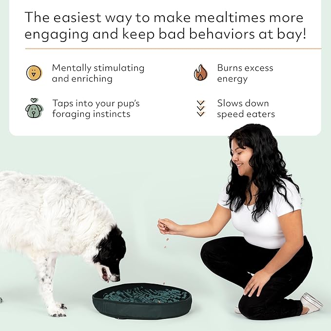 - VET-APPROVED MENTAL ENRICHMENT: Intentional in design, our slow feeding mat includes long fabric loops to engage your dog's brain and nose and tap into their natural foraging instincts. Daily mental stimulation helps to reduce stress & anxiety, combat boredom & hyperactivity, and decrease problem behaviors.