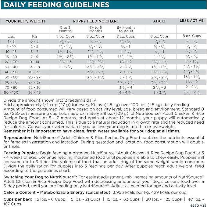 - CONTAINS: (1) 4LB Bag of NutriSource Chicken and Rice Dry Dog Food