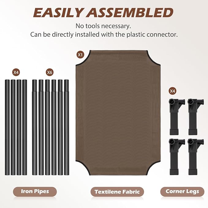 - Easy to Install: The cooling dog cot can be installed without the use of any tools, screws and can be installed directly with the plastic connector. It only takes a few minutes of your time, and presto. It's up and ready for your pet to enjoy in. Perfect for any indoor space or outdoor adventure.