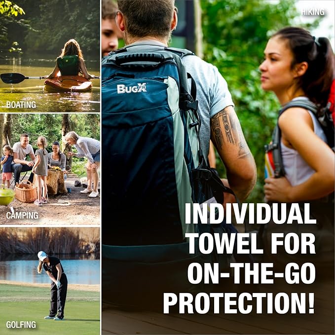 - TRAVEL READY - Light and compact, our individually wrapped mosquito repellent DEET-free wipes fit effortlessly in your backpack or pocket, ensuring easy access and convenience on the go