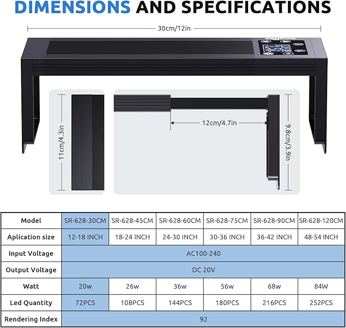 - Designed with a dual-layer aluminum body and multi-channel heat dissipation, this led aquarium light is built to handle high-performance tasks while efficiently dissipating heat. This advanced design extends the fish tank light’s lifespan, making it a reliable choice for long-term use