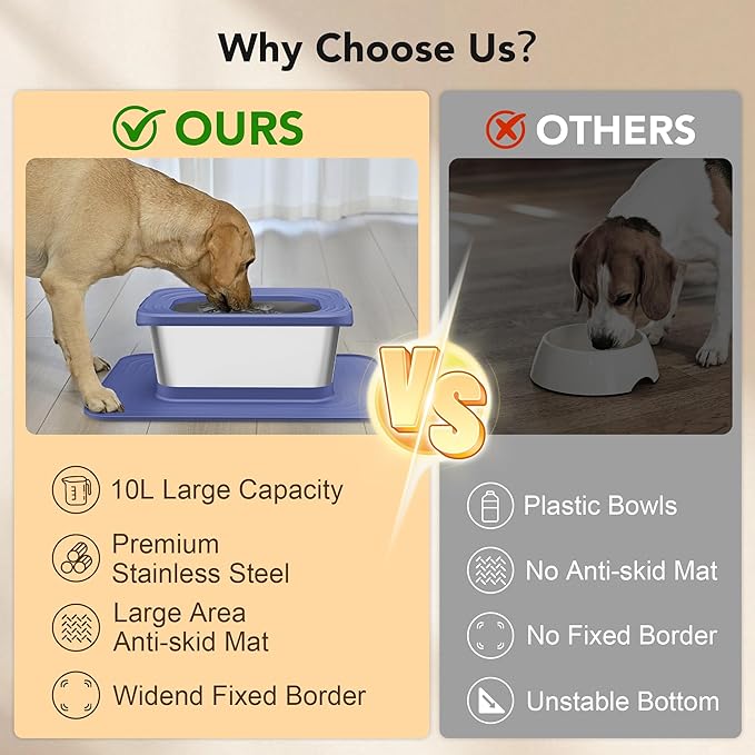 - 10L Extra Large Capacity: 2.6 gallon heavy-duty dog water bowl easily meets the needs of large/giant breeds or multi-pet households, reducing frequent refills. Perfect for daily use or trips, lets you focus on quality time with your pet