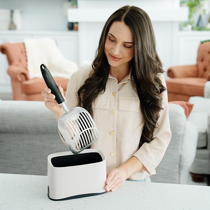 - [ERGONOMIC DESIGN MAKES LIFE BETTER] With our kitty litter scooper, you'll be happier, your cat will appreciate the cleanliness, and air quality will be noticeably better; This metal sifter for cats is designed for you to focus more on the fun parts of pet parenting (like scoop poop). For dustless, heavy-duty cleaning, this is the best litter scoop to add to your cat supplies, especially for multi-cat scooping homes as it eliminates dust caused unnecessary shaking