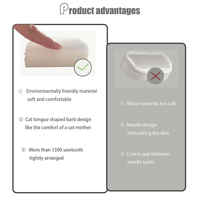 - A BRUSH THAT FEELS LIKE LOVE – Mimics a Cat’s Tongue for Soothing Care: Inspired by a mother cat’s tongue, our soft cat brush features over 1,300 barbed serrations to calm your kitty. Turn grooming into a soothing ritual that cats instinctively adore.