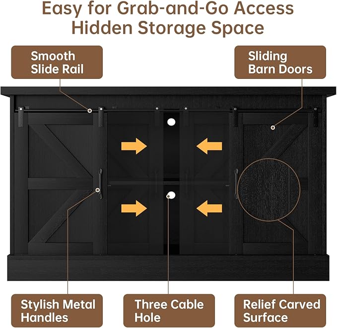 - Stylish Farmhouse Design: This farmhouse-style 55 gallon fish tank stand features sliding barn doors, allowing you to switch between open and hidden storage; The elegant white finish with wood-textured top blends seamlessly with any home decor