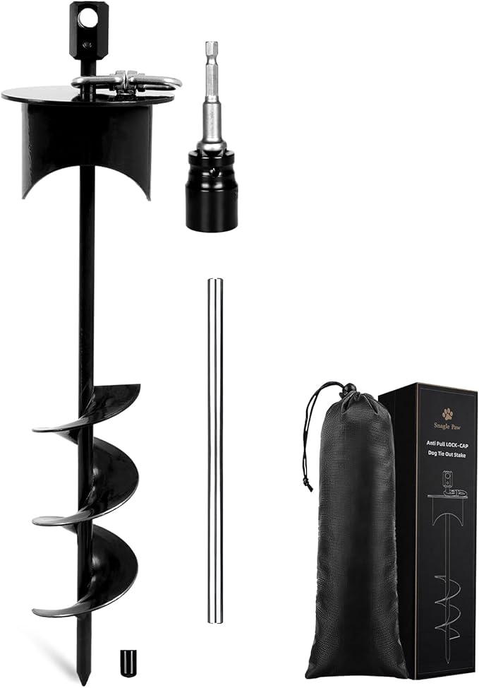 - MULTI-SCENARIO USE: The sharp spiral drill bit and curved auger blade make the dog stake suitable for sand, clay, and even rock. This versatile product is perfect for camping, yard, dog house, and beach environments