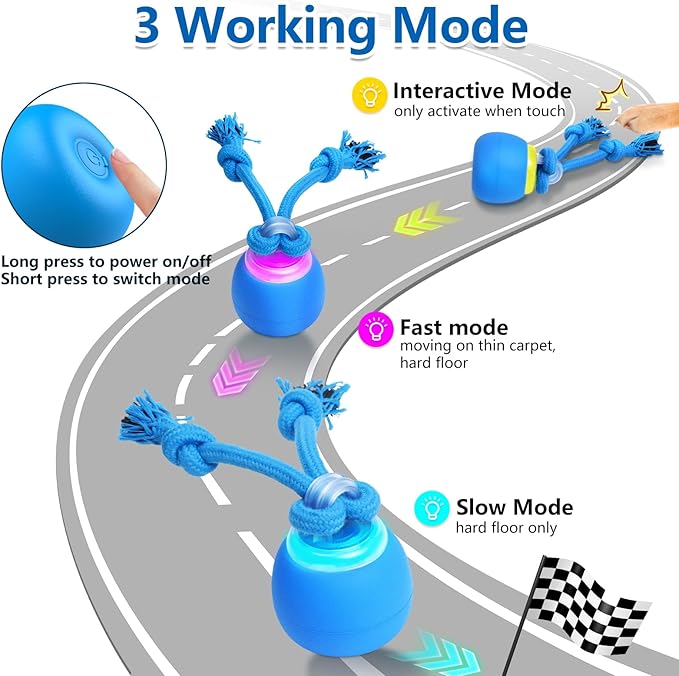 - 3 switchable modes: This motorized dog ball toy, with three different modes (Normal, Active, and Interactive), you can easily switch modes to match your dog's play style and energy level