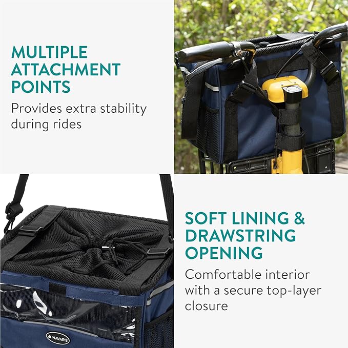 Navaris Pet Carrier for Bikes - Bike Basket Dog Carrier - Ideal Carriers for Small to Medium Dogs Up to 10kg (22lbs) - Drawstring Bag with Secure Locks and Strap - Blue