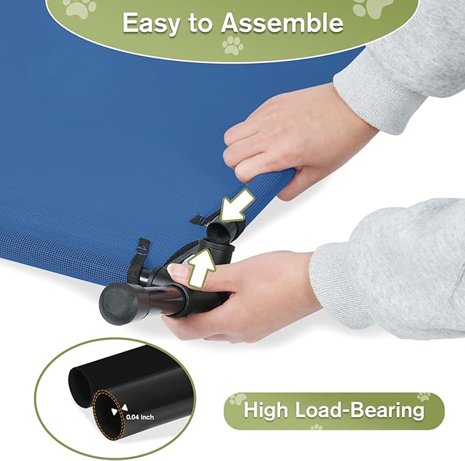 - Quick & Tool-Free Assembly: With a hassle-free assembly process,this cooling dog bed can be set up in minutes without any tools. This outdoor dog bed's lightweight frame makes it easy to move between indoor and outdoor spaces, offering your pet a cozy resting spot anywhere in your home or yard.