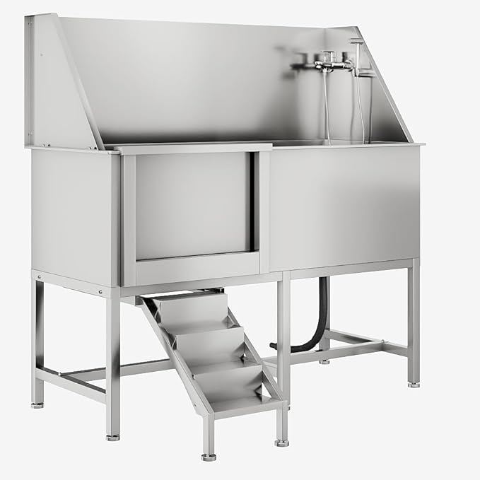 - 【Efficient Drainage and Leak-Free】:This dog wash station is equipped with a high-performance drainage system and integrated filter to prevent hair clogs. Our sewer hose connectors have screw-in threads and and the drain port is installed more securely. Stainless steel tub use seamless welding technology ensuring that the entire wash sink is leak-free and long-lasting use.