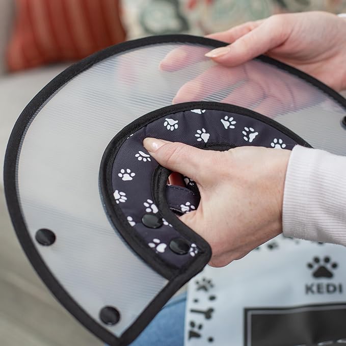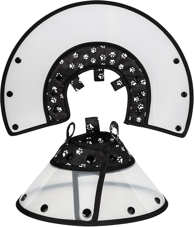 - [ADJUSTABLE WITH BUTTON CLOSURE]: Engineered with button adjusting closure, for a less noise open and close and more durability versus hook and loop system. Cone comes with adjustable collar for a safer adjustment to the pet's neck