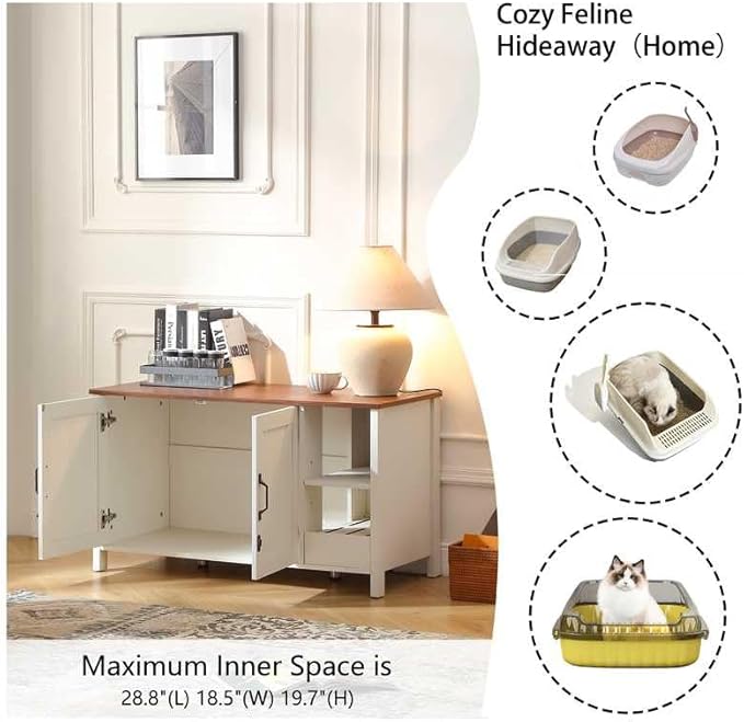 41.3'' Cat Litter Enclosure,Adjustable Shelf for Dog Proof and Storage,Locks Added for Cat, Litter Collector,Small Indoor Cat House,Antique White
