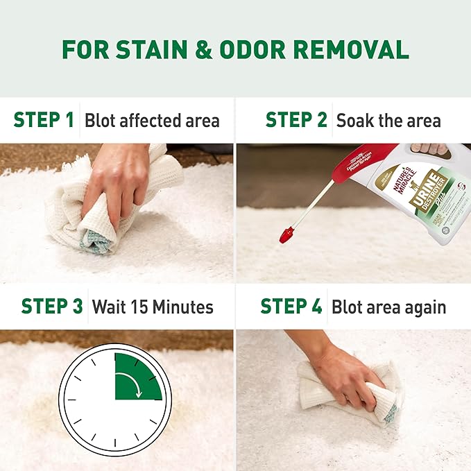 - ENZYMATIC FORMULA FOR DOG URINE MESSES: Targets and destroys dog urine messes and the yellow, sticky residue.