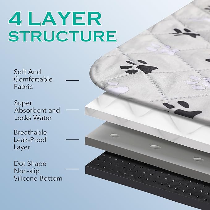 - đGREAT MATERIAL OF 4 LAYERSđThe outer layer is supremely comfortable and soft, covering a highly absorbent second layer. The inner layer is of a breathable, waterproof material, and the bottom is a nonslip silica gel fabric that wonât slide even with a wiggly dog