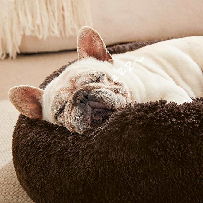 Love's cabin 24in Cat Beds for Indoor Cats - Cat Bed with Machine Washable, Waterproof Bottom - Dark Brown Fluffy Dog and Pet Calming Cushion Bed for Joint-Relief and Sleep Improvement
