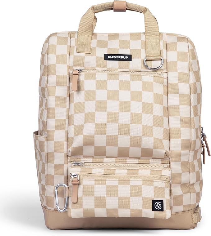 Porter 2-in-1 Dog Gear Backpack – Premium Dog Travel Bag with 10 Pockets, Zip-Off Treat Pouch, Leash Clip, Waterproof Pockets & Water Bottle Holder – Weekend, Hiking, Camping, Checkerboard