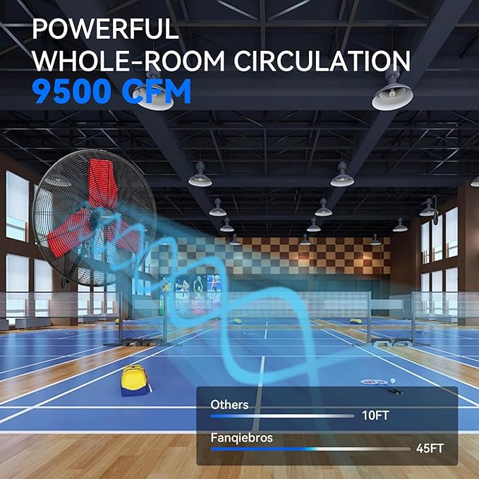 - ๐๐จ๐ฐ-๐๐จ๐ข๐ฌ๐ ๐๐๐ฌ๐ข๐ ๐ง - The heavy-duty wall fan operates at a high speed of 9500 CFM with a noise level of only 65dB, which is lower than the industry standard, creating a quieter gathering or working environment