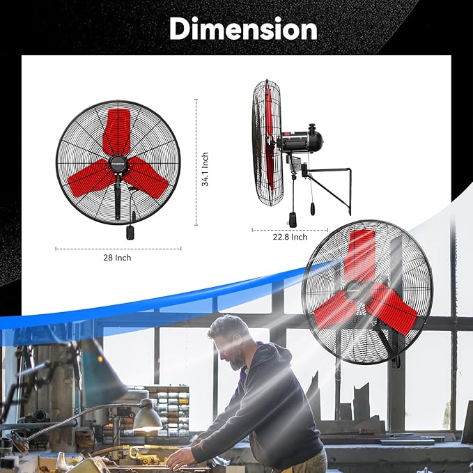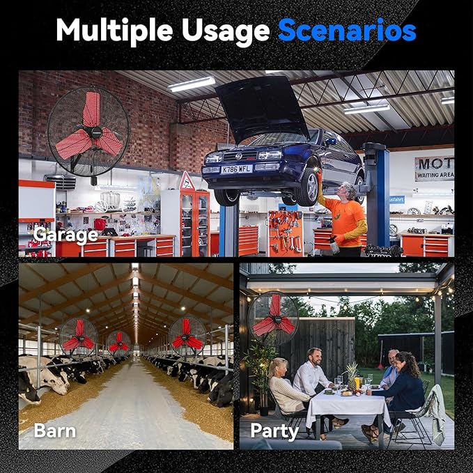 - ๐๐ข๐ ๐ก ๐๐๐ฅ๐จ๐๐ข๐ญ๐ฒ ๐๐ข๐ซ ๐ ๐ฅ๐จ๐ฐ - The oscillating wall fan zipper design makes the operation more intuitive and simple, and can be adjusted from high, medium and low speeds by zipper to meet different needs. High speed 9500 CFM, medium speed 8000 CFM, low speed 7200 CFM, providing hurricane-like airflow to meet your garages, shops, covered patios, or anywhere else you need