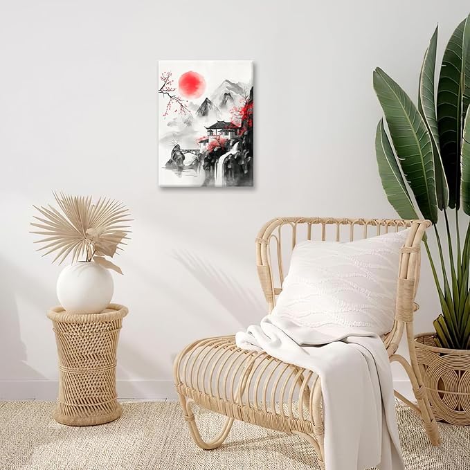 Japanese Wall Art Canvas Asian Nature Wall Decor Prints Framed Painting Mountain Landscape Pictures Gifts Artwork for Bathroom 12"x16"