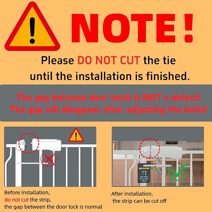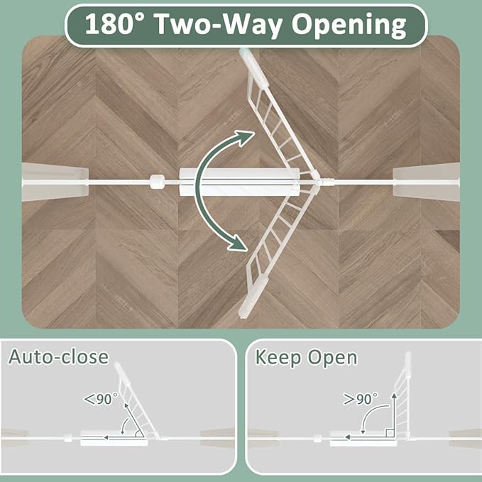 - 【BABY GATE WITH DOOR】 - The door can swing in both directions. Besides,the door of our baby gate has auto-close and auto-lock function. You don't need to worry about forgetting to close the door,it will auto-close when opens less than 90 degrees,You can open the door just with one hand.