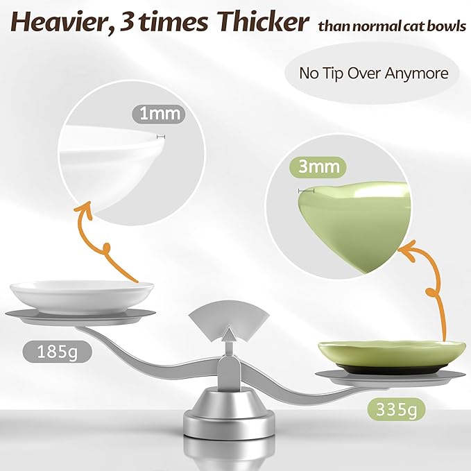 - 【Safe & Healthy Ceramic Material】: Our cat food bowls made of high-temperature fired food-grade ceramic are the same standard as human ceramic dishes, cadmium-free and lead-free, non-toxic and hygienic. You cat will get a healthier eating.
