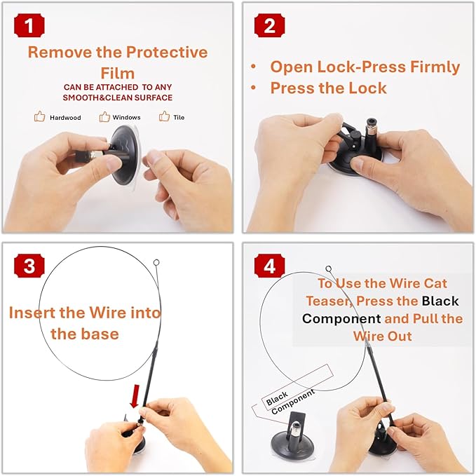 - 【2-in-1 Play Design – Interactive or Self-Play Wand】Use the strong suction base to let your cat play solo, or detach the flexible 33-inch wand to join in on the fun with interactive chase-and-hunt games.