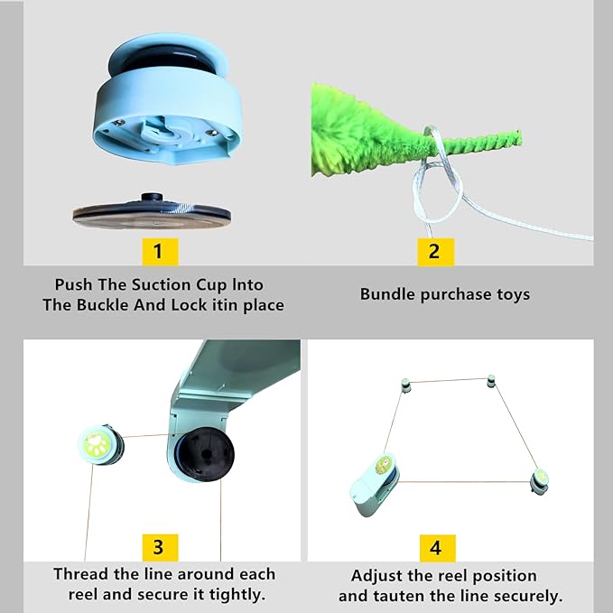 - Multiple DIY Game Modes:This cat interactive toys for indoor cats features 3 suction cup-mounted spool wheels, allowing free customization of movement paths based on spatial layout, creating a cat toys for bored indoor adult cats stimulation chase lure course kit that sparks their natural hunting instincts. Burning calories and preventing obesity. This is the Happy and Healthy Kitten Essentials!DIY Attachments Swap between cat-favorite feather teasers, rope lures, or crinkle balls to maintain novelty and adapt to your cat’s evolving play preferences.