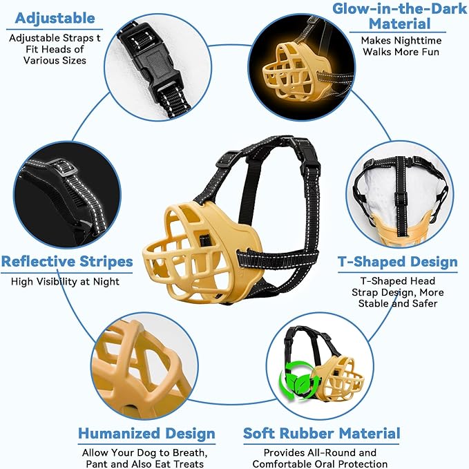 - Easy to Put on and Remove: Designed for Convenience, The Adjustable Straps on Our Dog Muzzle Allow for Quick and Secure Fitting. The Ergonomic Design Ensures a Hassle-Free Experience for Both You and Your Dog, Making it Ideal for Daily Walks, Training Sessions, Or Visits to the Vet. Reflective Strap Design Provides Night Travel Safety