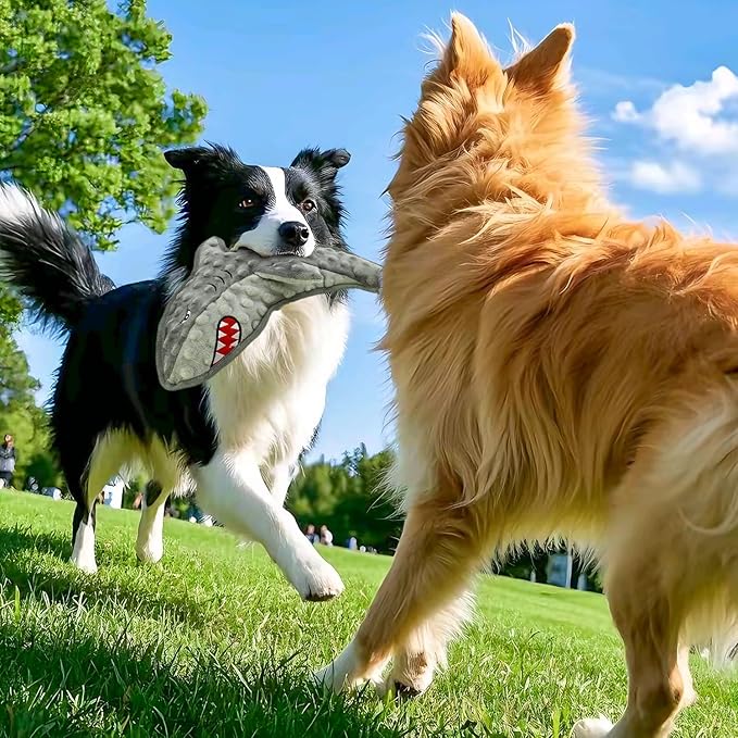 - Cute Gray Shark no stuffed dog toys:No-Stuffing, Durable Chew Toys for Puppies & Adult Dogs This Seahorse dog toy set features high-quality material with no stuffing inside, preventing messy spills when chewed. The non-toxic, pet-safe design ensures worry-free chewing. these toys suit small, medium, and large breeds, providing long-lasting fun for all dogs.
