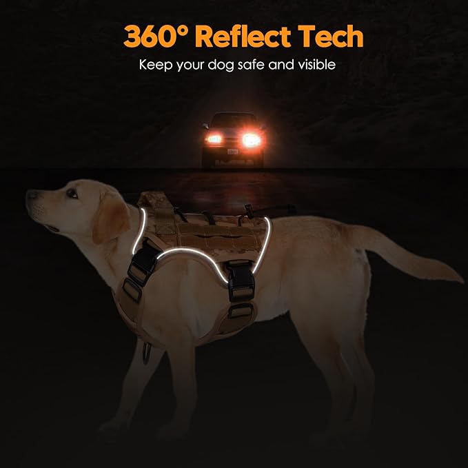 Heavy-Duty Tactical Dog Harness for Large Dogs, No Pull Adjustable Reflective Pet Vest with Molle System, K9 Military-Grade Control for Service Training, Outdoor & 10+ Breeds, Khaki Camo, Medium