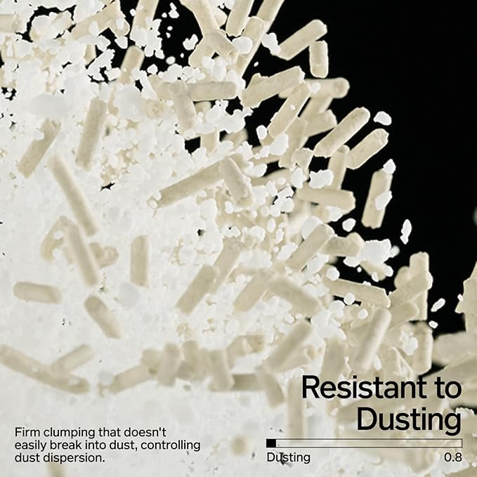 - 【Tracking-0.4】Tracking Preventing:The non-stick paw-friendly tofu cat litter and small-particle tapioca cat litter complement each other to fill gaps and feature a certain weight to present certain anti-tracking performance.