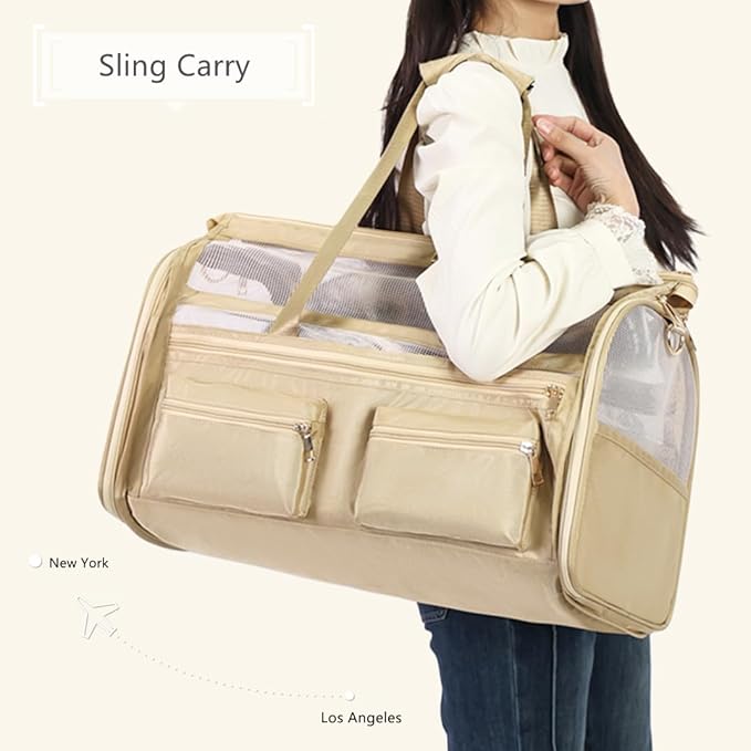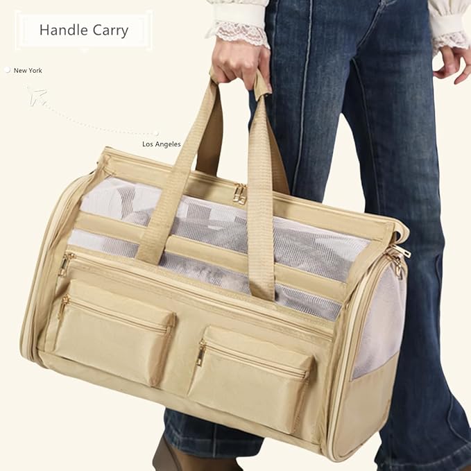 - [AIRLINE APPROVED] This cat carrier is designed with airline approved, it can fit comfortably under most flight seats, we can take our pets wherever we want. Dog travel carrier offers two attachment loop handles that can be used as a dual harness or as a luggage strap for balanced carry and secure transport.