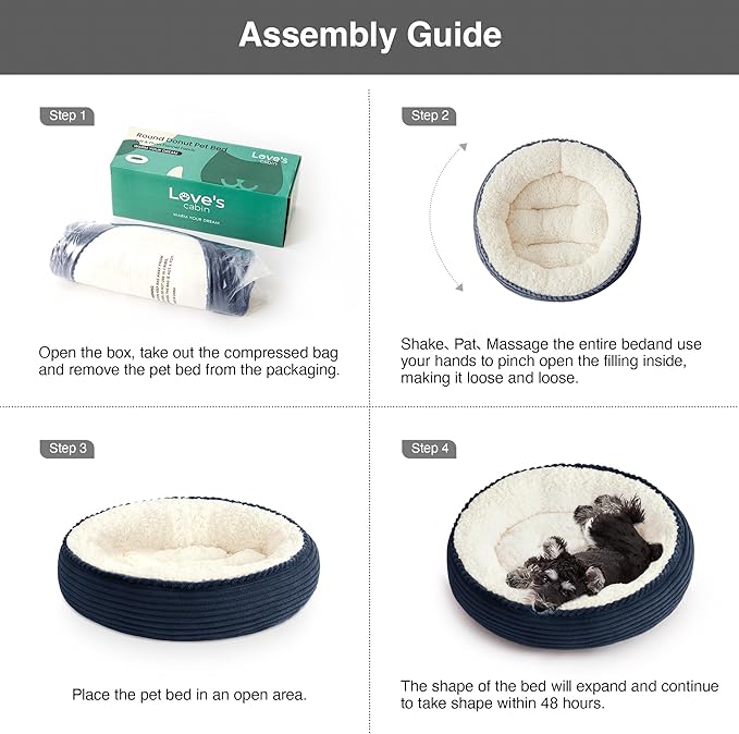 - Design Features: Love's cabin dog beds feature nest-like walls, round pet bed offers a safe, warm cozy place for small dog to snooze.In order to better maintain the shape of the donut nest,our interior filling is 25% more than most competition.