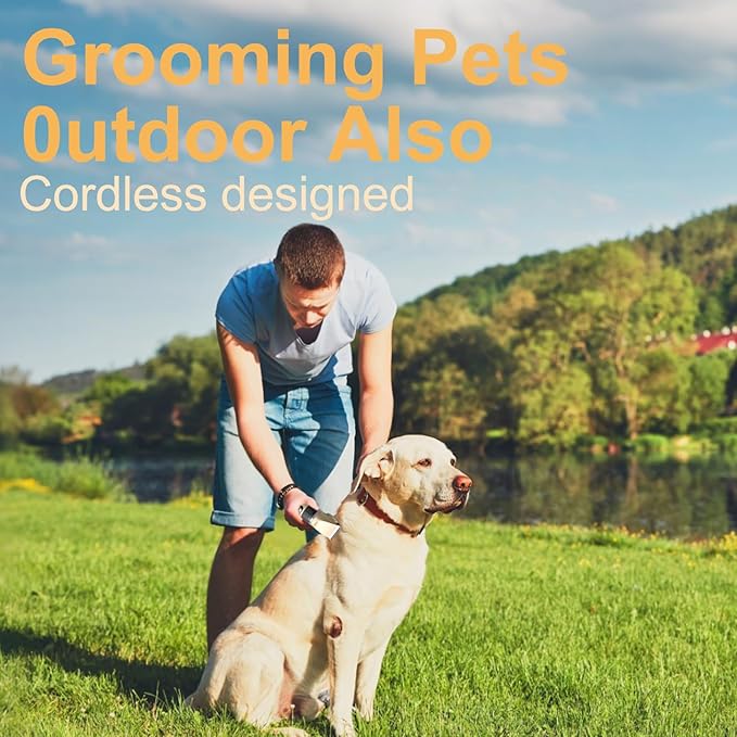 Dog Pet Grooming Kit Low Noise - Cordless Rechargeable Clippers for Dogs/Cats - Upgraded Accessory Version with Two Scissors and a Storage Bag (Gold)