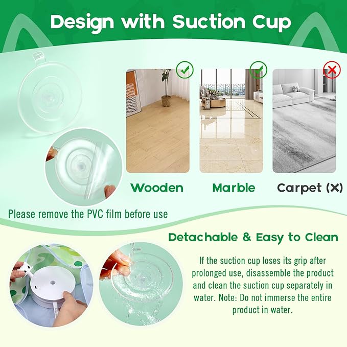 - Stable and Durable Design: Features ultra-sticky suction cups (remove PVC film first!) that grip tile, hardwood, and marble tightly—no sliding or tipping. Not for carpet. Durable, reusable adhesive ensures the toy stays put for endless fun.