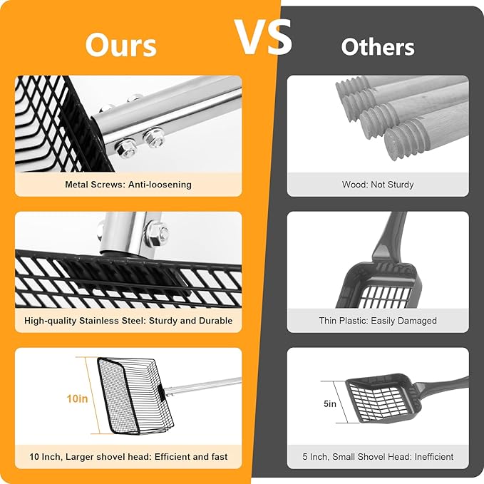 - 【Multi-Functional】:Works as a chicken coop shovel, cat litter scooper, beach sand sifter, hay shovel, and more.