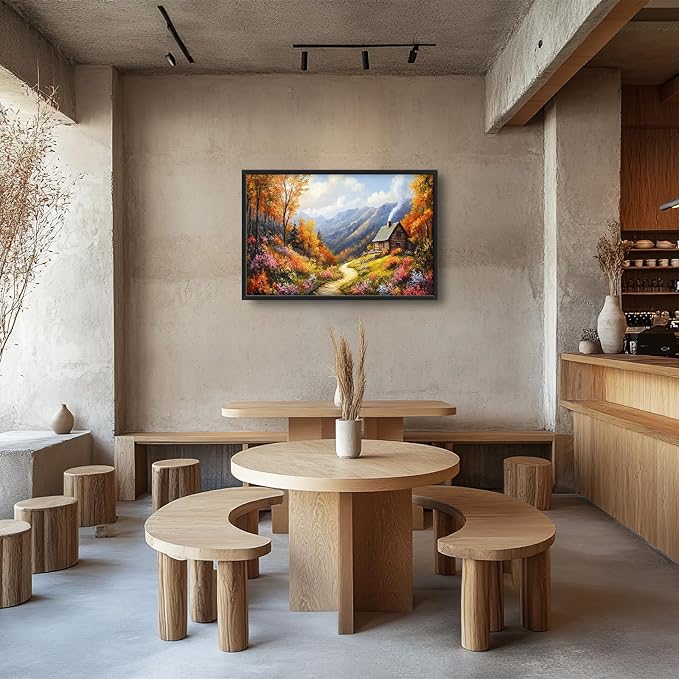 Framed Large Autumn Mountain Wall Art for Living Room, Oversized Wildflower Tree Wall Decor Nature Landscape Canvas Painting Modern Artwork Home Decoration for Living Room Bedroom 36"x24"
