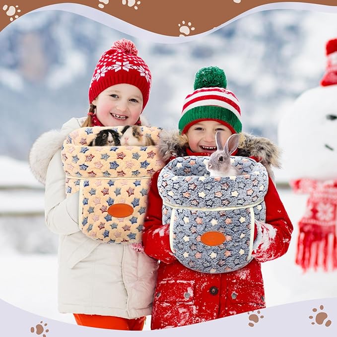 Wenqik 2 Pcs Guinea Pig Bed Cuddle Warm Hideout Small Animal Sack Cozy House Bedding Sleeping Cushion Portable Pet Carrier Cage Nest for Rabbit Hamster Rat (Blue, Khaki,Star)